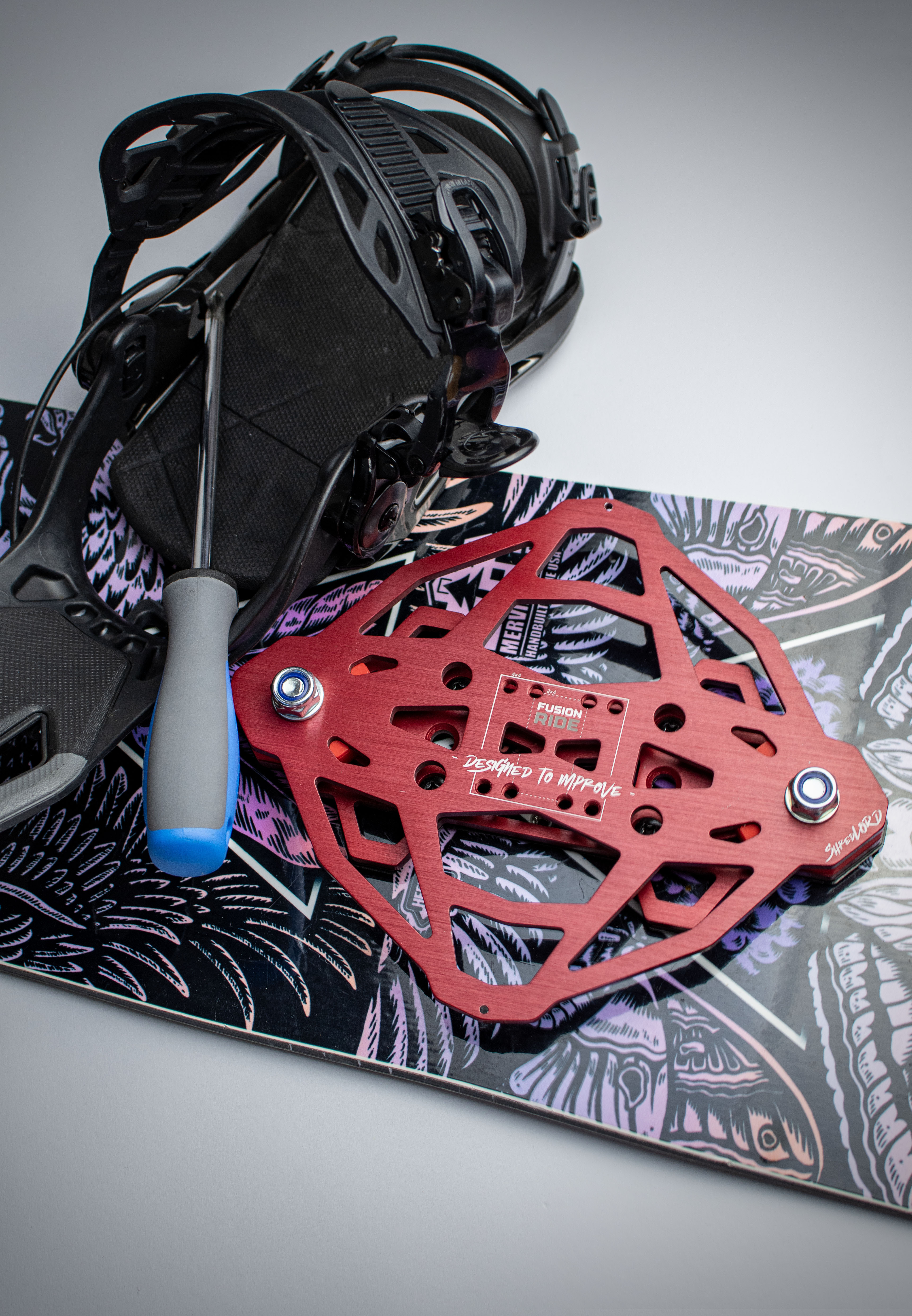 ShredLORD is compatible with most modern snowboards, including 4x4, 2x4 (mini disk), and the Channel system.