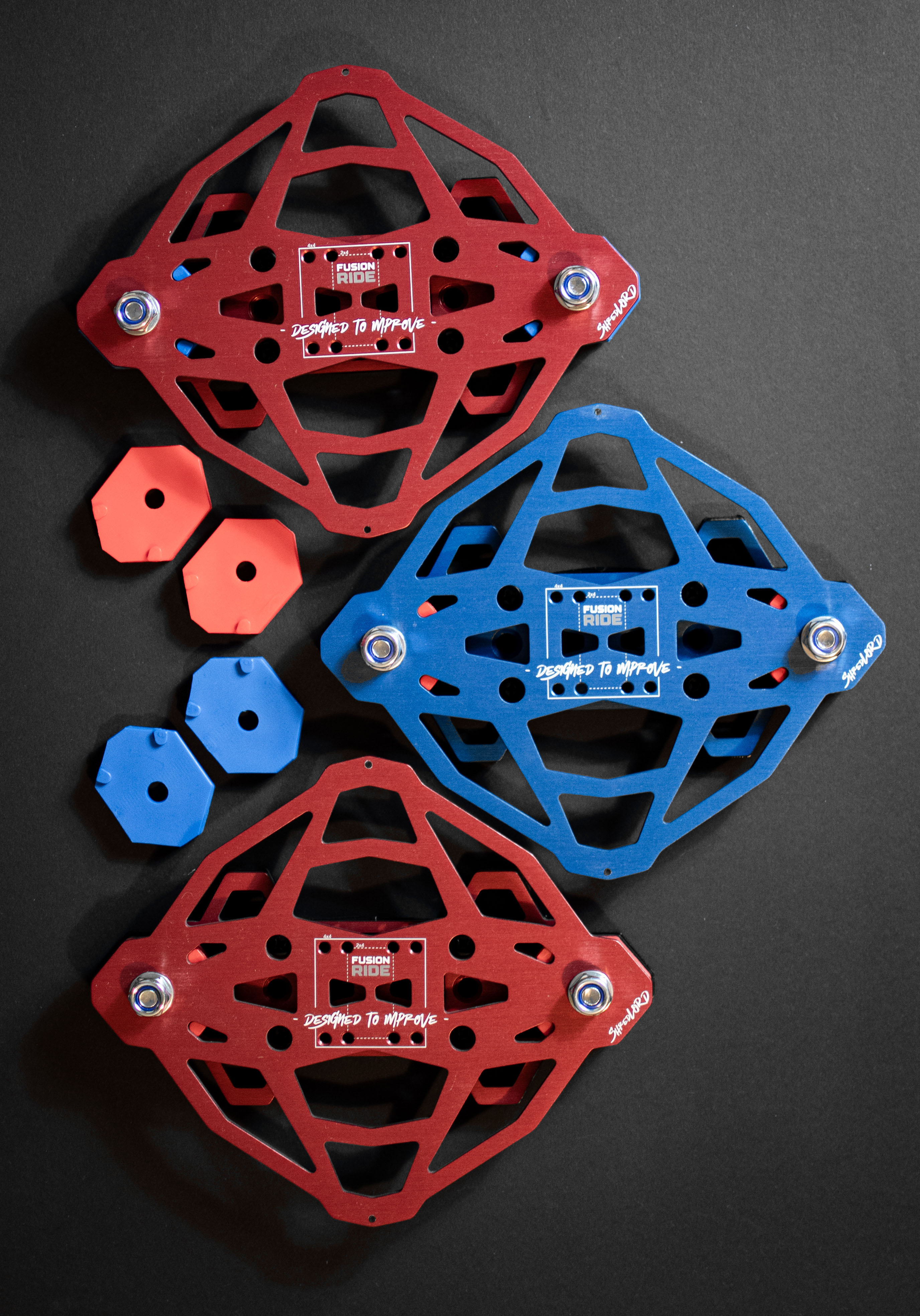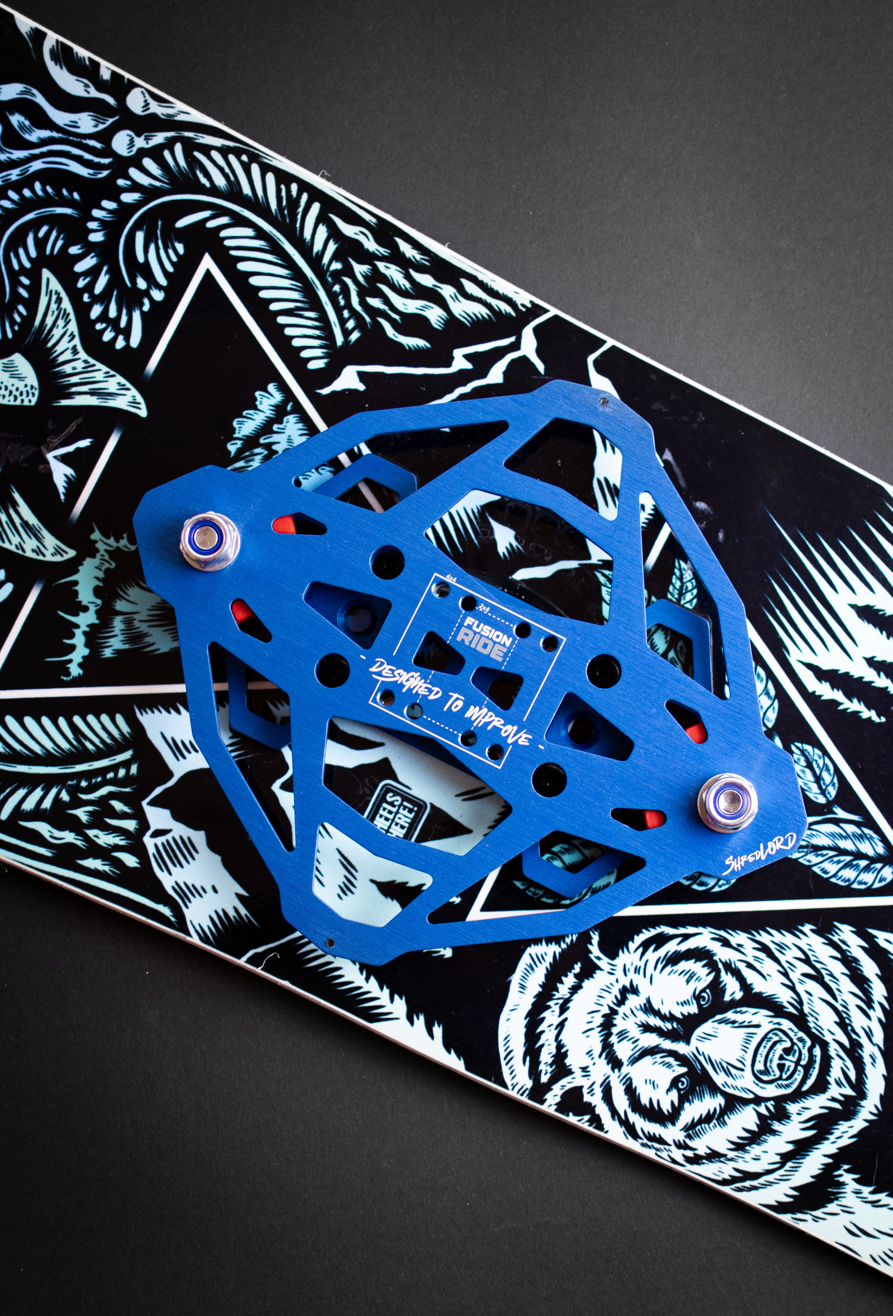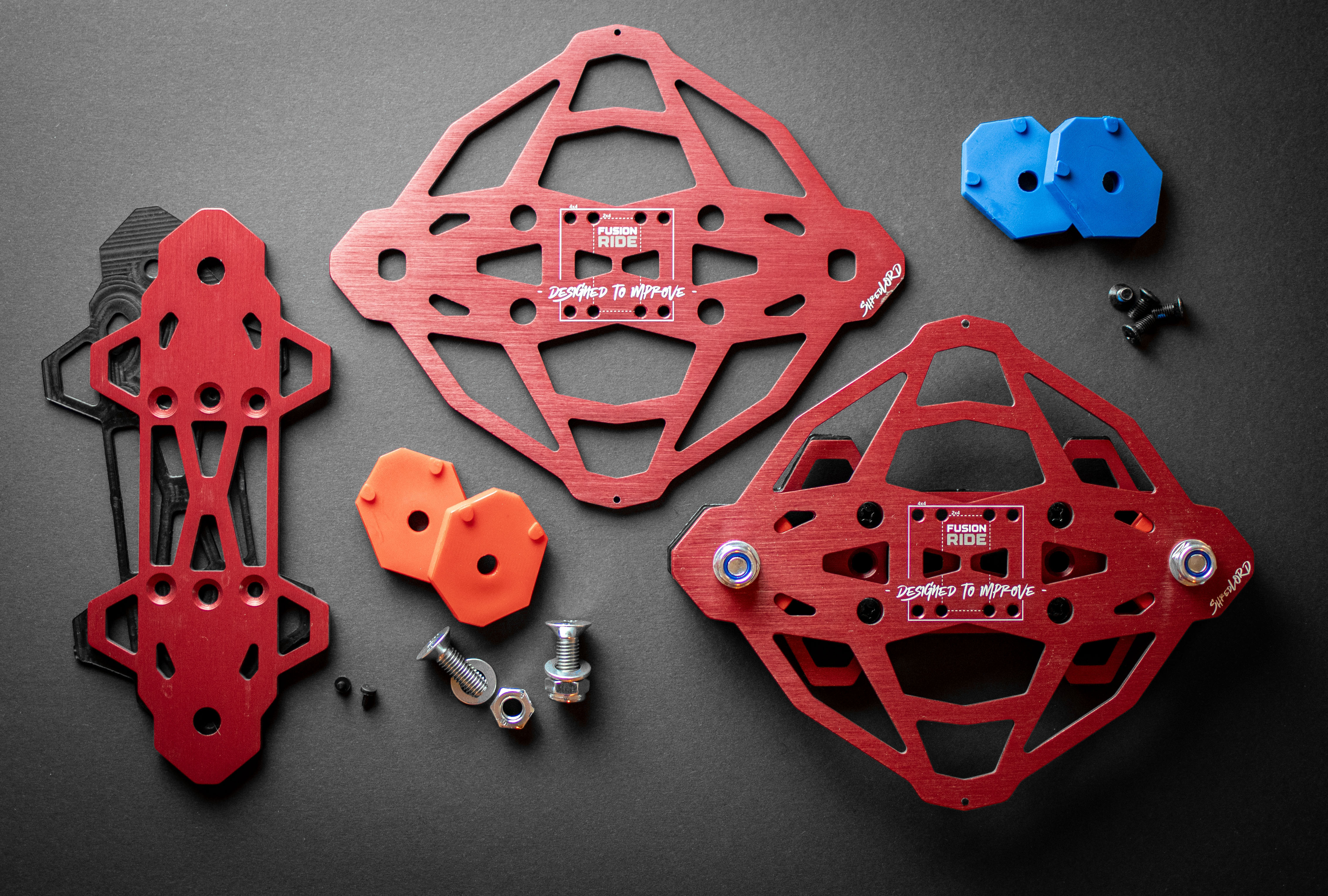 Customization is built into the system. Each unit includes anodized metal plates in multiple color options and tunable polyurethane bushings, enabling riders to tailor both the aesthetic and responsiveness of their boards.