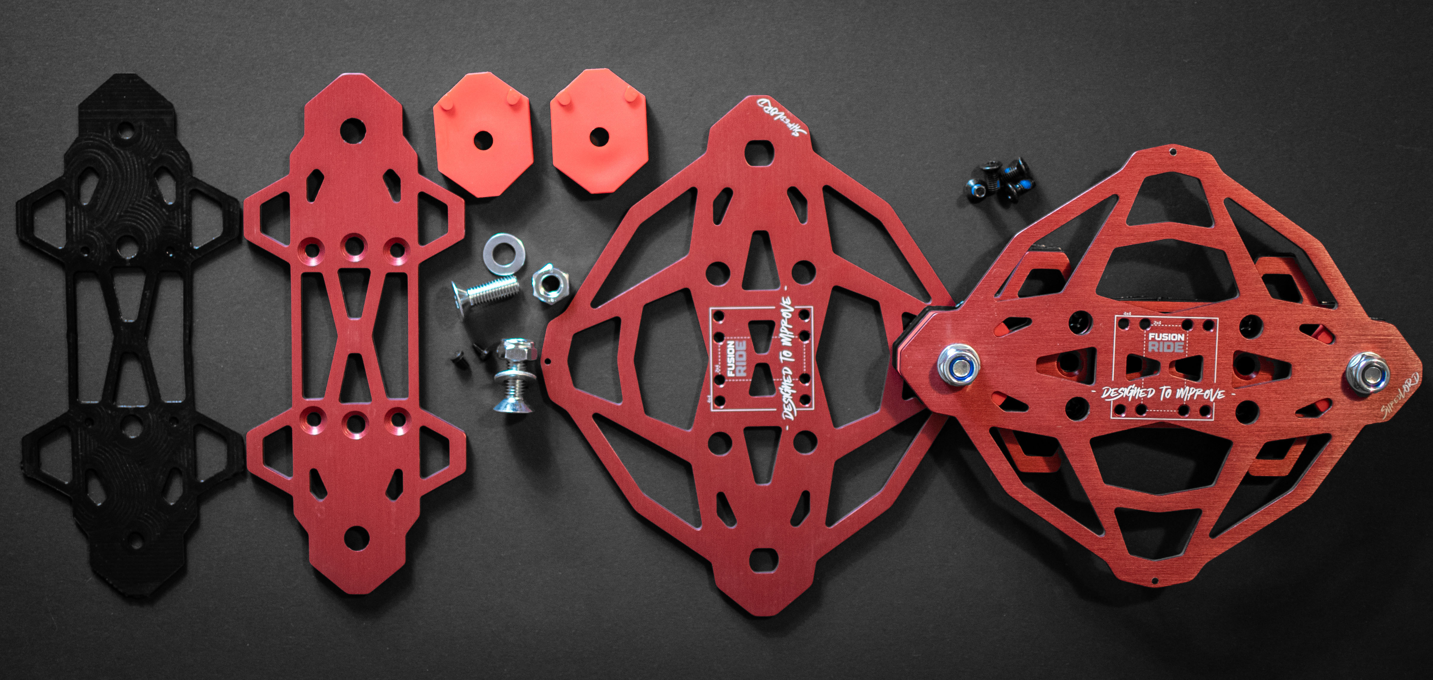 The top and bottom plates are laser cut from the same alloy trusted in racecars. Ultra-light, high-strength, and anodized to visually pop.