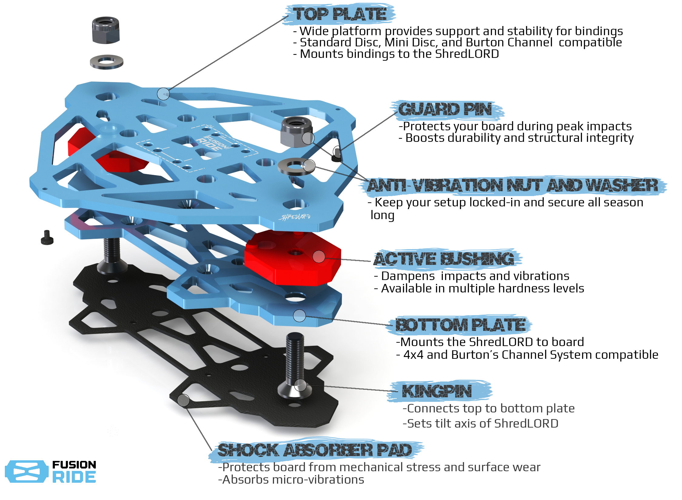 ShredLORD dampens board chatter by absorbing impacts.